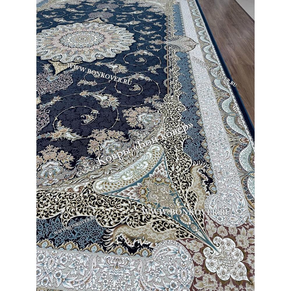 Отличный ковер , правда на размере 160х400 см разместилось две серединки - так даже гармоничнее ! Цвет темно-синий - камера плохо передает