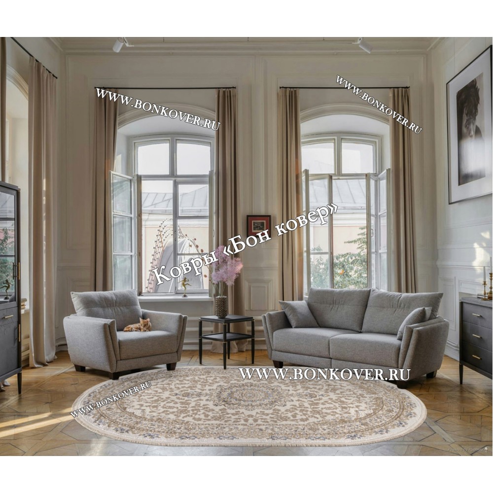 Турецкий Ковер Для Гостиной Медальон Дизайн 06 Овал станет идеальным дополнением интерьера, оформленного в современном или классическом стиле. Мягкое, но прочное, ковровое покрытие обеспечивает тепло- и шумоизоляцию, отличается длительным периодом эксплуатации, пожаробезопасностью, экологичностью и высокой износостойкостью, является отличным барьером от повышенной влажности в помещении и утеплителем для холодного пола. Благодаря качеству материалов, ковер не деформируется, сохраняет форму под тяжестью предметов мебели. За его поверхностью легко ухаживать.